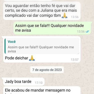 Acompanhamos seu caso com dedicação até o fim, com prestação de informações e consultas ilimitadas até obtenção do resultado.